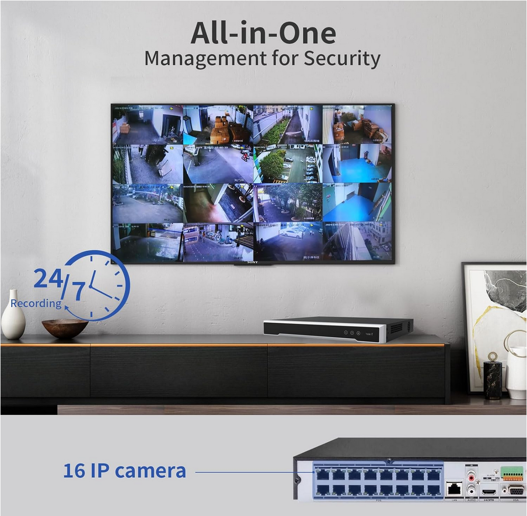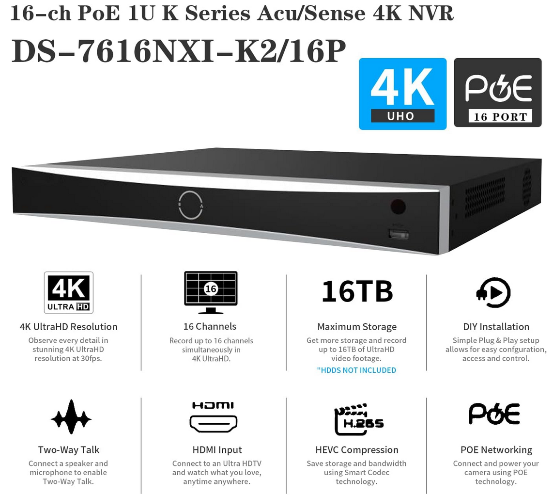 4K PoE 16 Channel NVR DS-7616NXI-K2/16P Network Video Recorder Plug & Play with 16 Power-Over-Ethernet(PoE) interfaces,Work with 12 MP/8 MP/6 MP/5 MP/4 MP/3 MP/1080p IP Camera