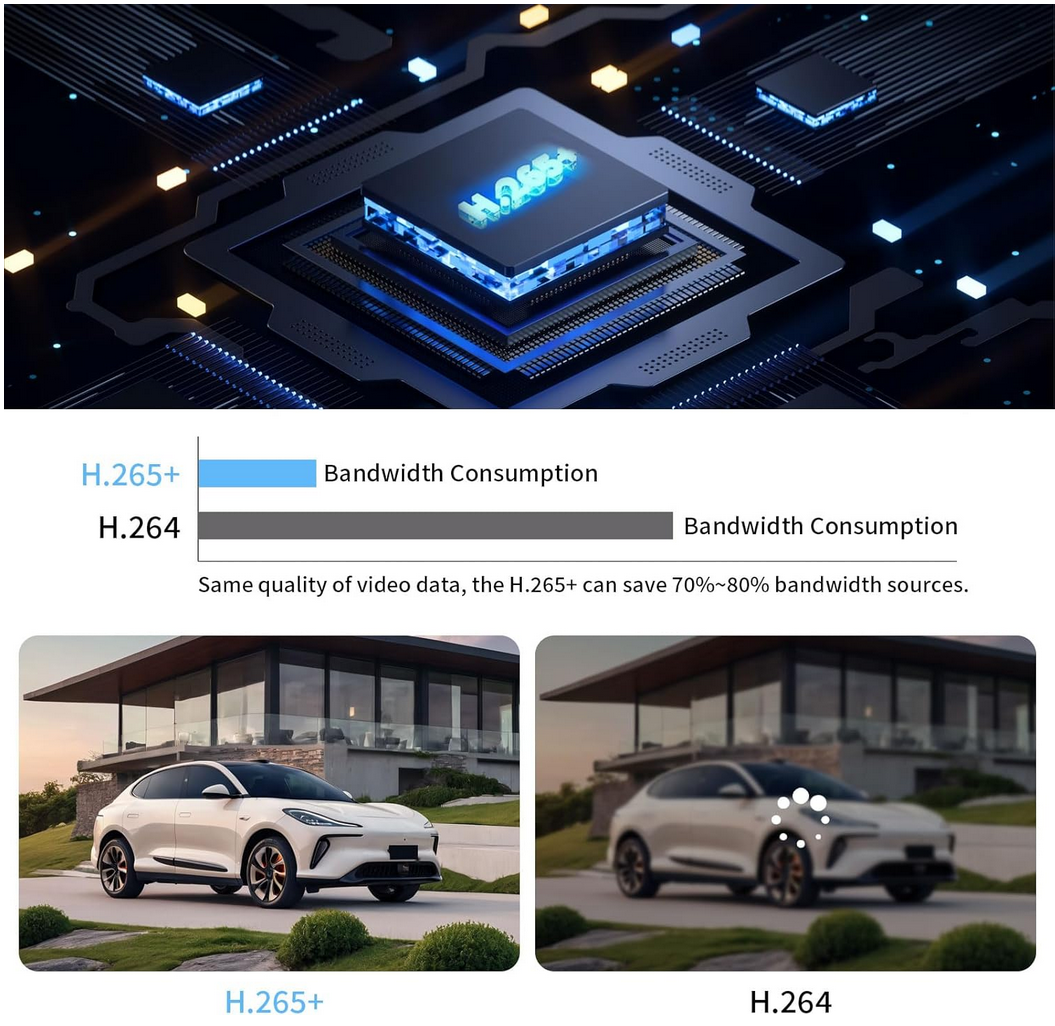- H.265+/H.265/H.264+/H.264 video formats | H.265+ compression effectively reduces the storage space by up to 75% | Adopt stream over TLS encryption technology which provides more secure stream transmission service