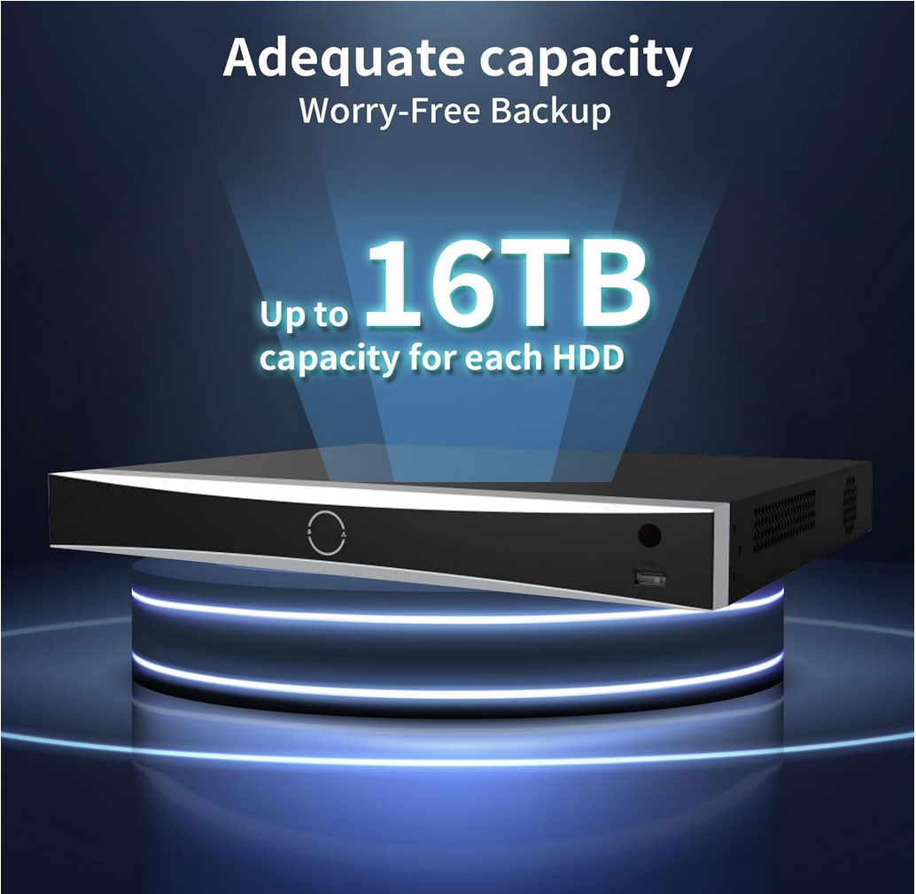 - Up to 2 SATA interfaces for HDD connection (up to 10 TB capacity per HDD,HDD not include) | 16-ch synchronous playback