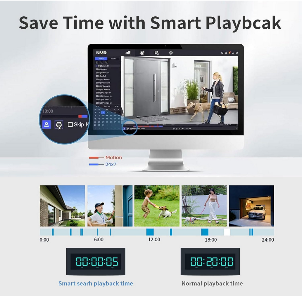 - All channels support Motion Detection 2.0 | 2-ch video analysis for human and vehicle recognition to reduce false alarm | Search for the selected area in the video, and playback to improve the playback efficiency