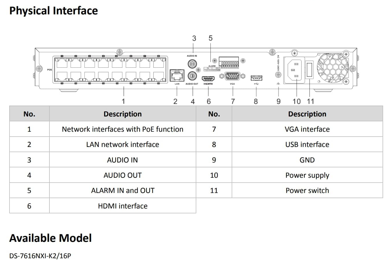 - 16 independent PoE network interfaces | 1 self-adaptive 10/100/1000 Mbps Ethernet interface | support Hik-Connect for easy network management
