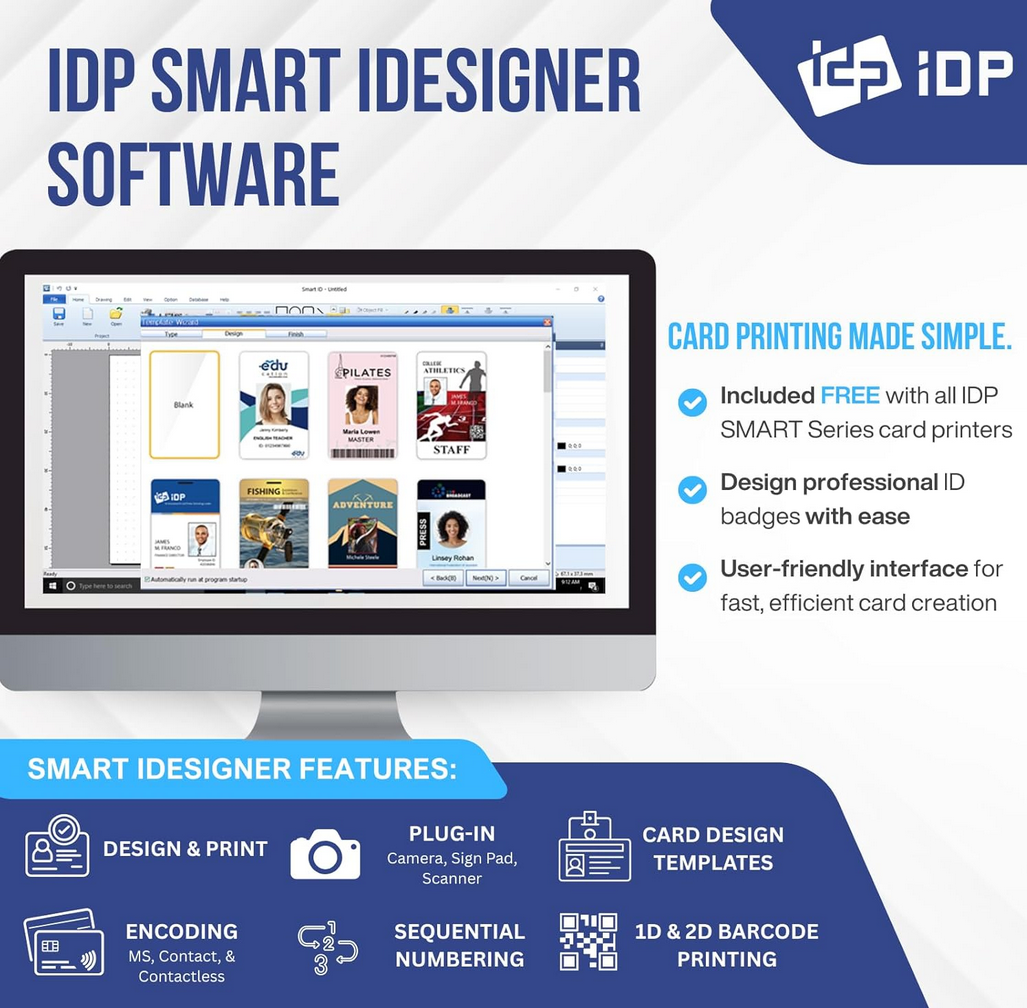 Boost your business efficiency and reduce costs by printing ID badges, access control badges, membership cards, and loyalty cards in-house with the IDP SMART-21S ID Card Simplex Printer Kit. This innovative and user-friendly system is perfect for small businesses, such as gyms, day cares, and organizations that don’t require high-volume card printing. The SMART-21S is simple to operate—just use the LED button and hand-feed blank cards into the machine. In seconds, you’ll have a high-quality, one-sided, color-printed card. Despite its compact design, this system is capable of printing over 156 full-color cards per hour, making it suitable for larger organizations, universities, and schools with high volumes of faculty and student cards. With the SMART-21S, there’s no need to wait for cards to be mailed out. Print on demand and provide your employees, students, and customers with their ID, membership, or loyalty cards instantly. Streamline your operations and enhance efficiency with IDP.