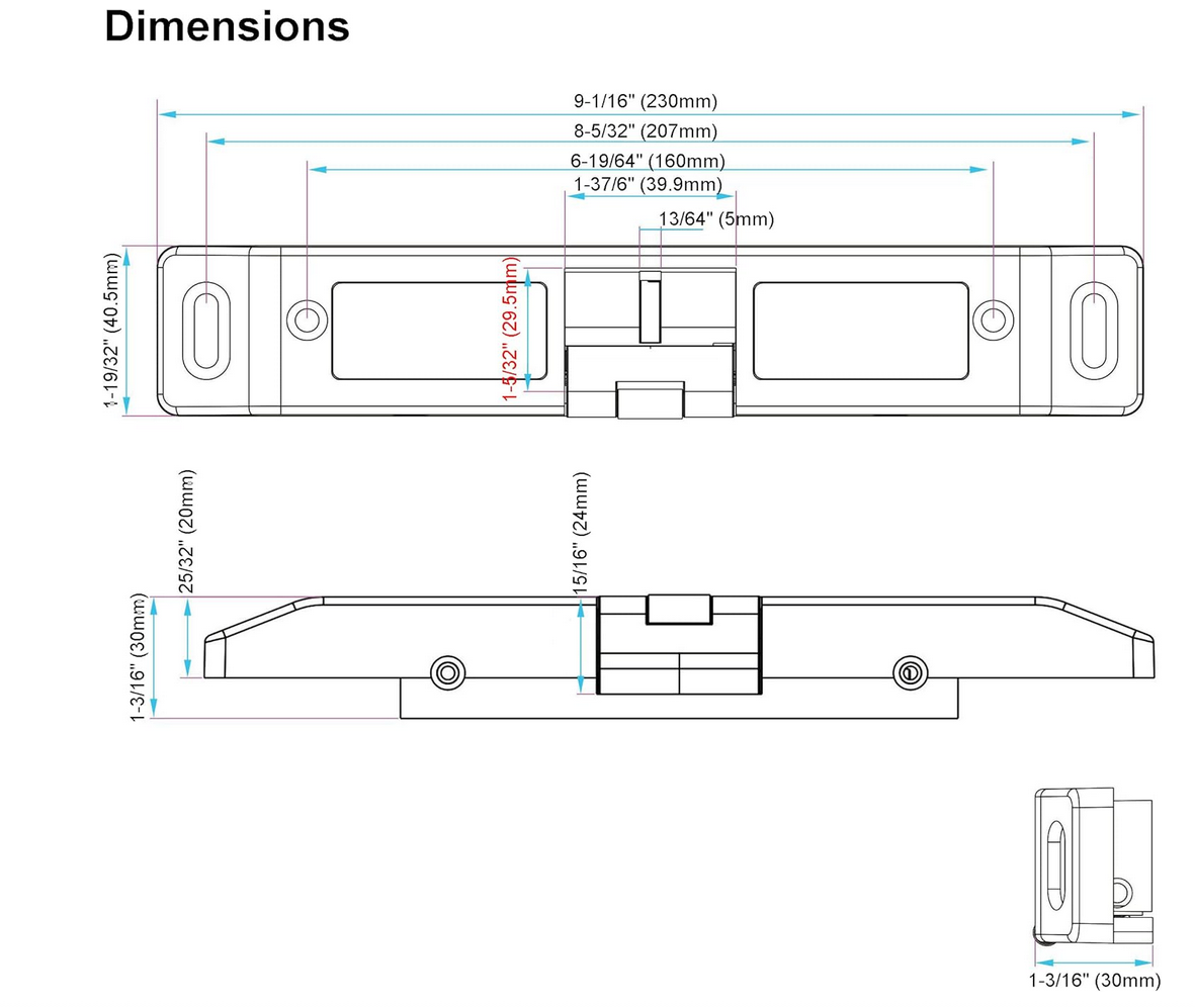 - Strike Opening: 1-37/64"x1-5/32"x15/16" deep (39.9x29.5x24mm deep)