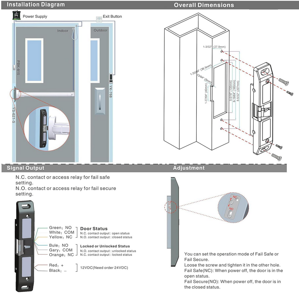 - Signal Output: Lock Status Output NO/NC/COM