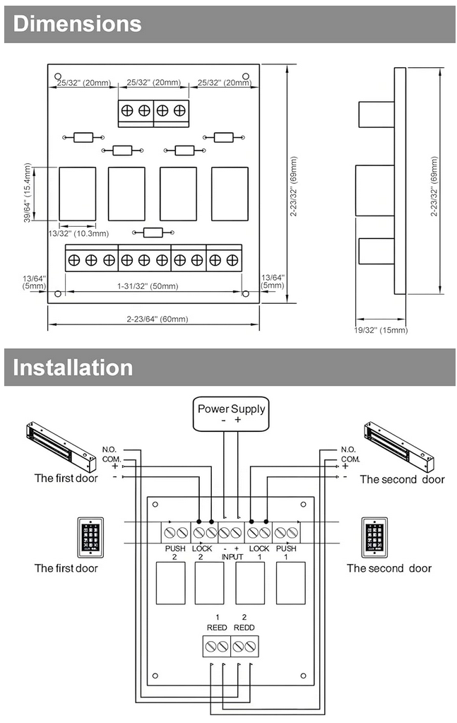 UHPPOTE Interlock Airlock Access Control Relay Module of 2 Two Door for Bank Prison