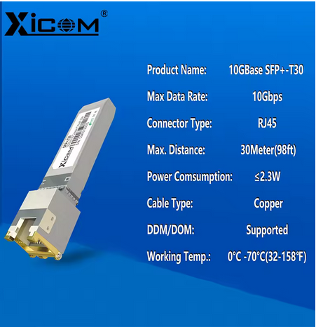 10G-T30 Copper Small Form Pluggable (SFP) transceivers are based on the SFP Multi Source Agreement (MSA) . They are compatible with the 10Gbase-T / 5Gbase-T / 2.5Gbase-T standards as specified in IEEE Std 802.3 . 10G-T30 uses the SFP's RX_LOS(must be pulled up on host) pin for link indication. If pull up or open SFP's TX_DISABLE pin, PHY IC be reset.